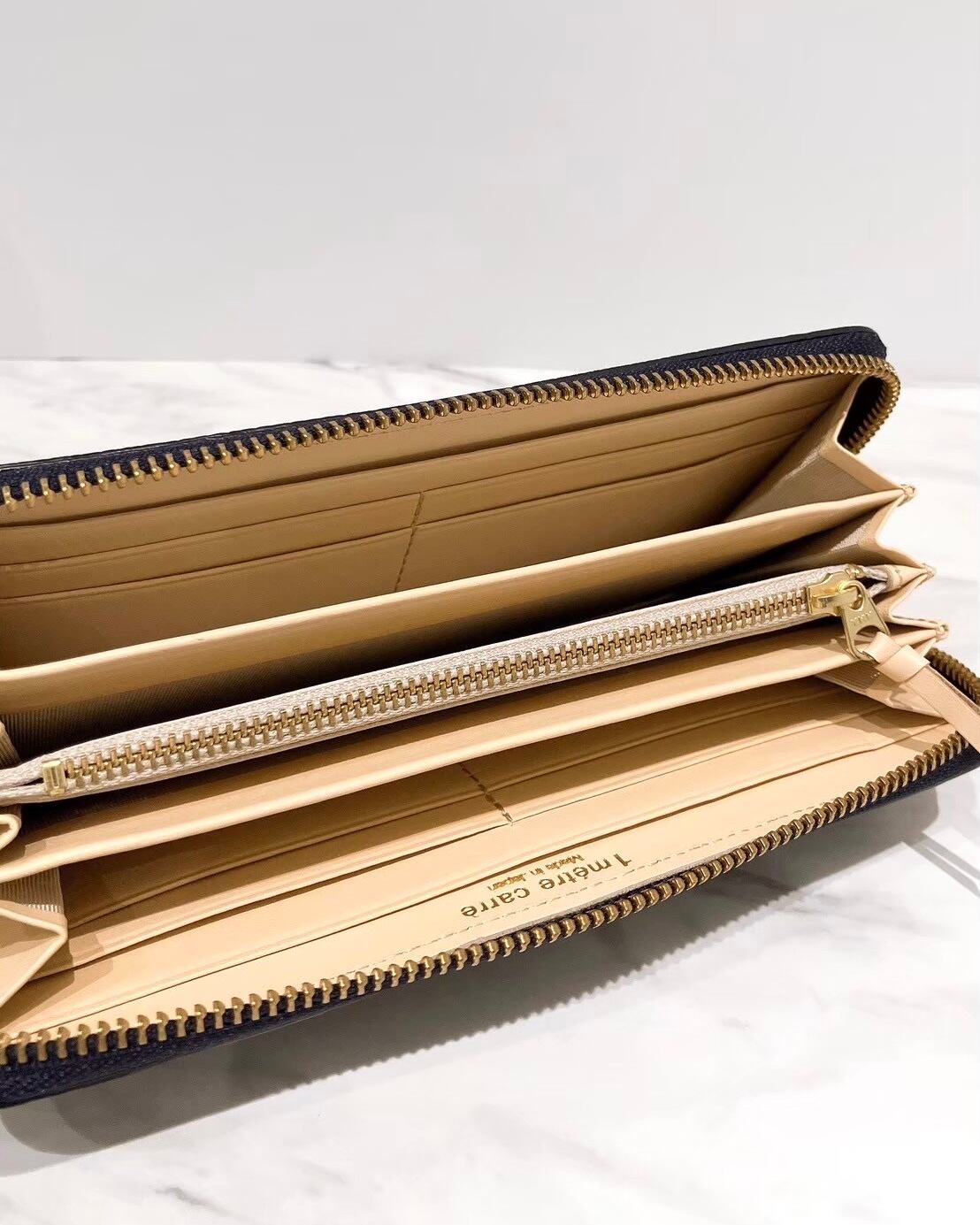 コの字型ラウンドファスナーを全開にすると一目で中身が見渡せます。