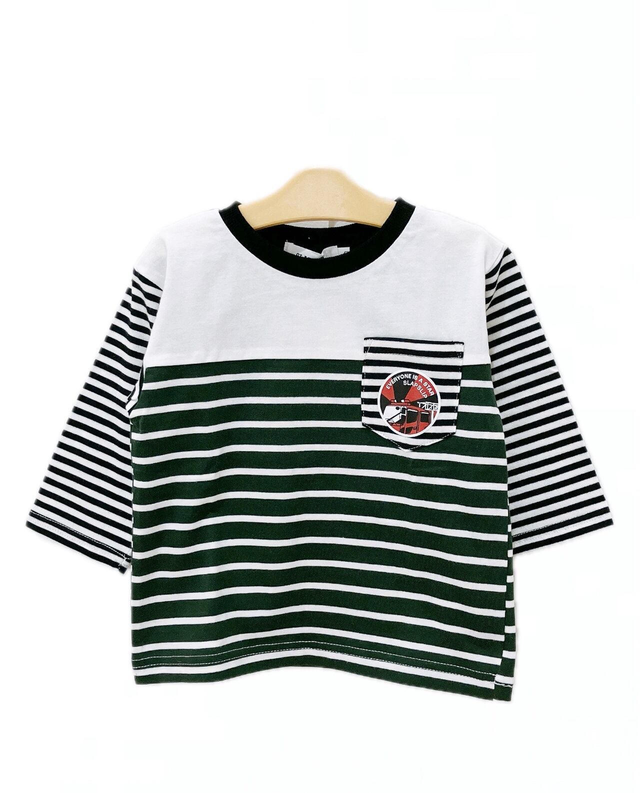 SLAP SLIP 胸ポケット付き 消防車ボーダー柄切り替えTシャツ BeBe