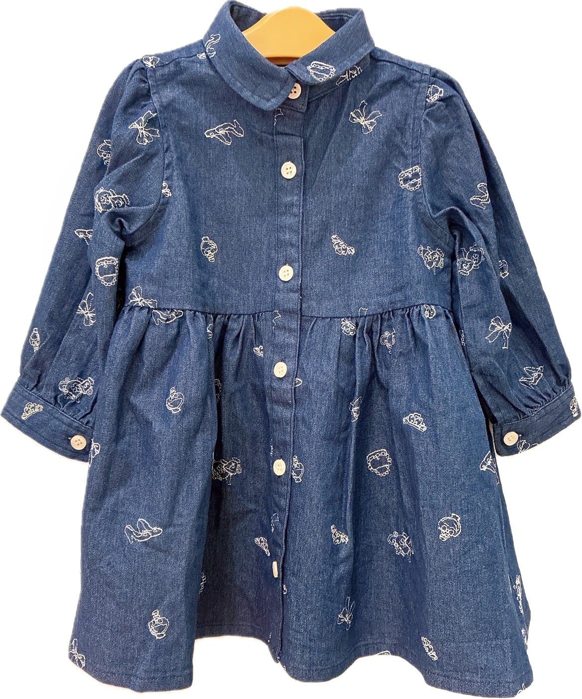 カジュアルになりがちなデニムアイテムにガーリーさをプラスした長袖のワンピース。