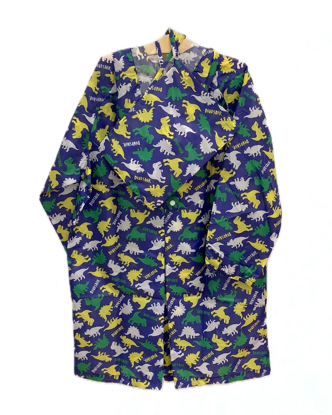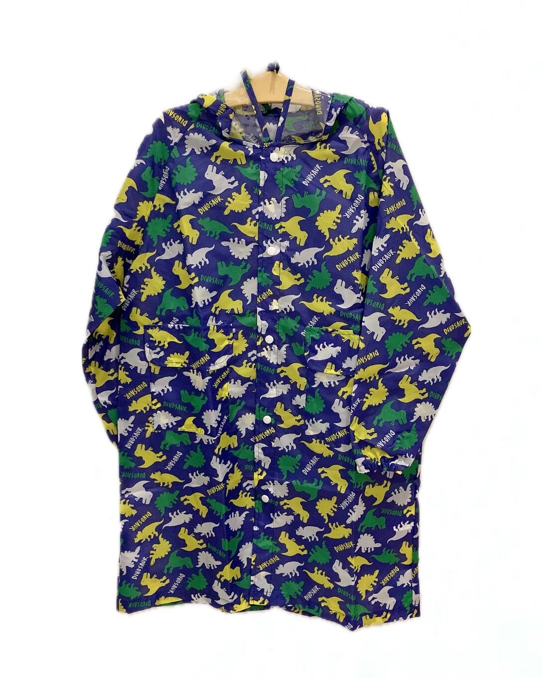 雨の日が楽しくなる恐竜がいっぱい、かっこいい総柄レインコート。