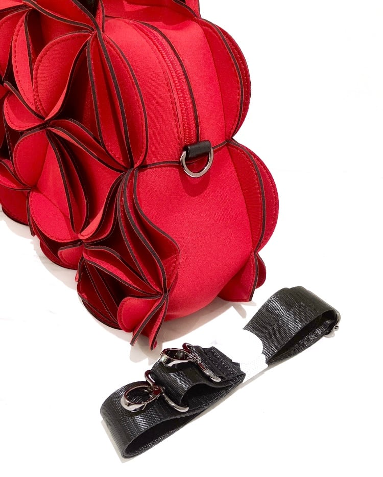 デザインは立体的なフラワーモチーフ、配色カラーがステキなミニボストンバック。