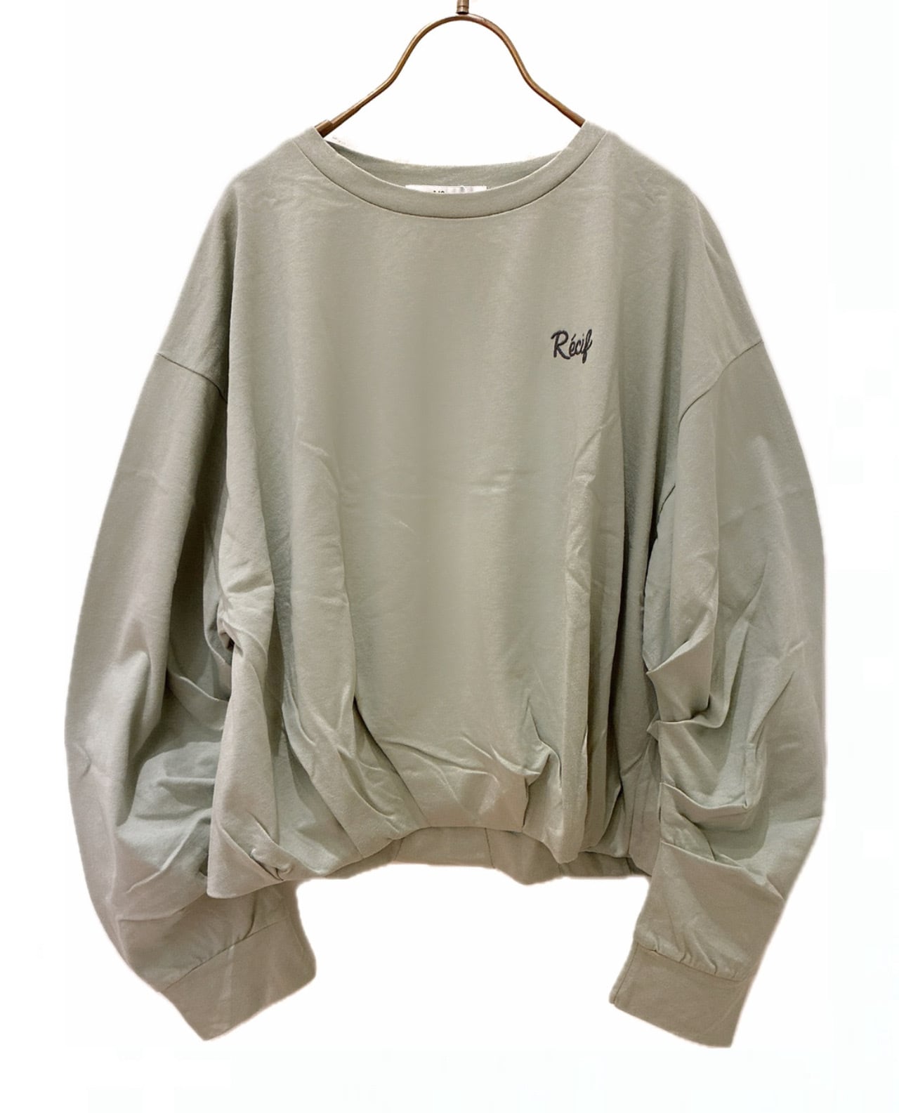 袖のギャザーとワンポイント刺繍がおしゃれなトレーナー。