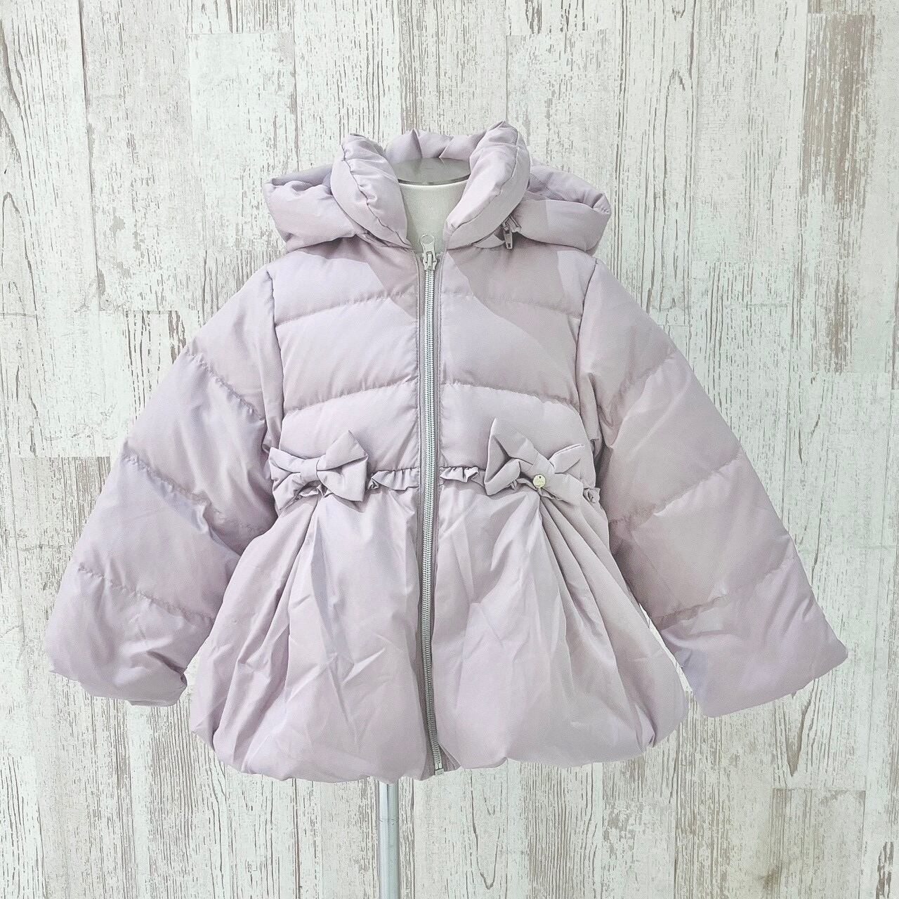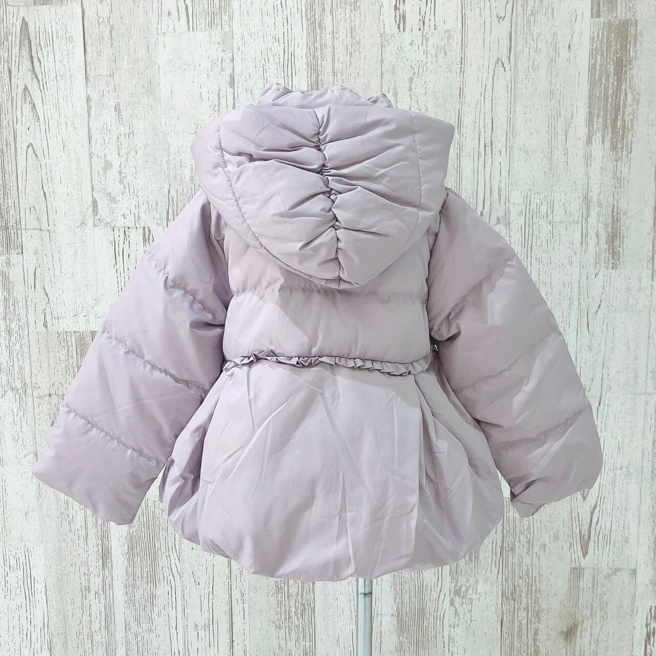 ふんわり広がるペプラムシルエットが、女の子らしさを引き立てるダウンコート。