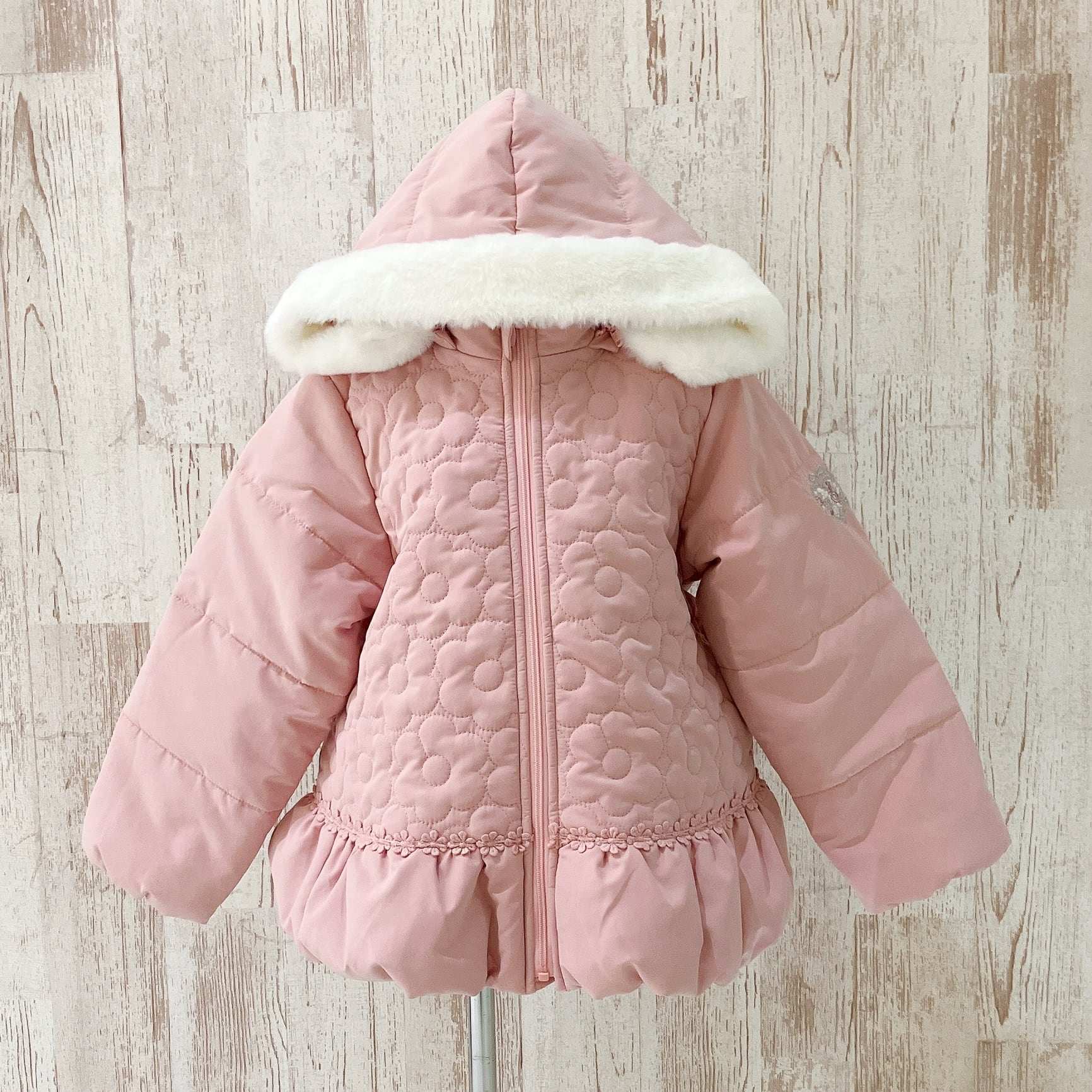 流行りのキルティングにふんわり広がるシルエットが、女の子らしさを引き立てるダウンコート。