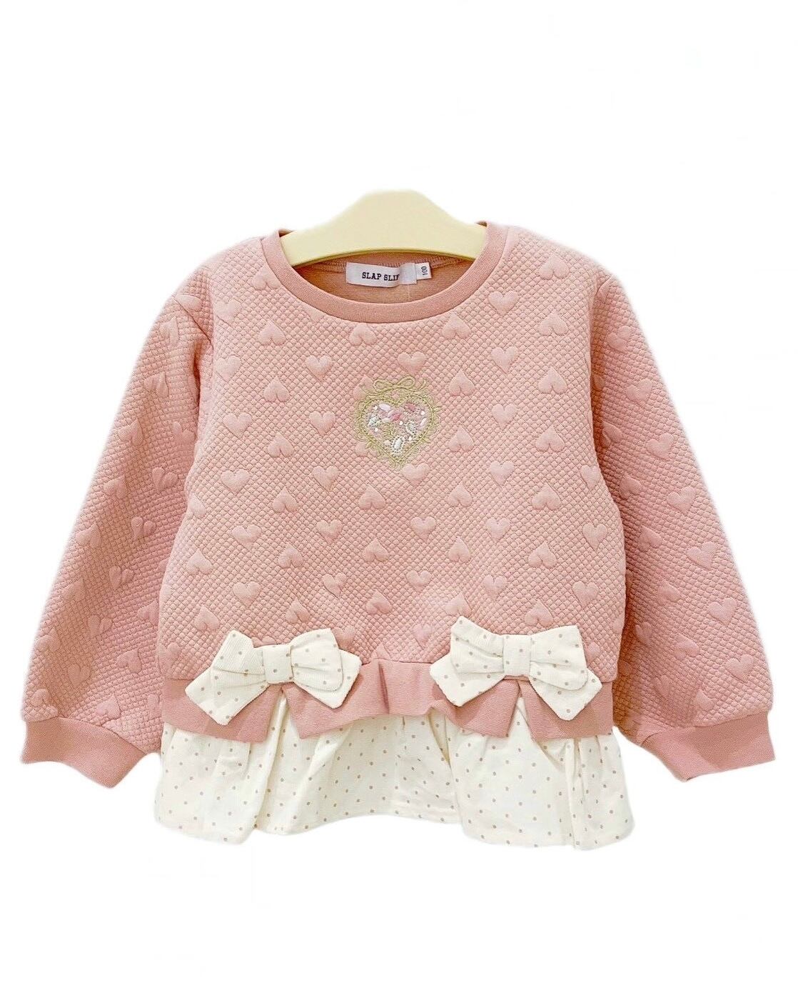 SLAP SLIP ハート柄コーデュロイ切り替えトレーナー ピンク 90cm BeBe