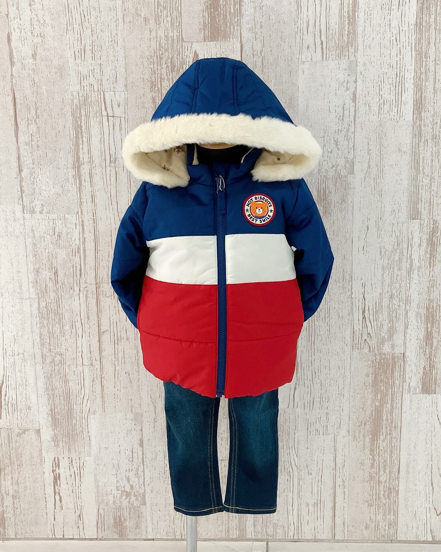 配色切替と胸元のビーンズくんのワッペンがポイントのジャンパー。