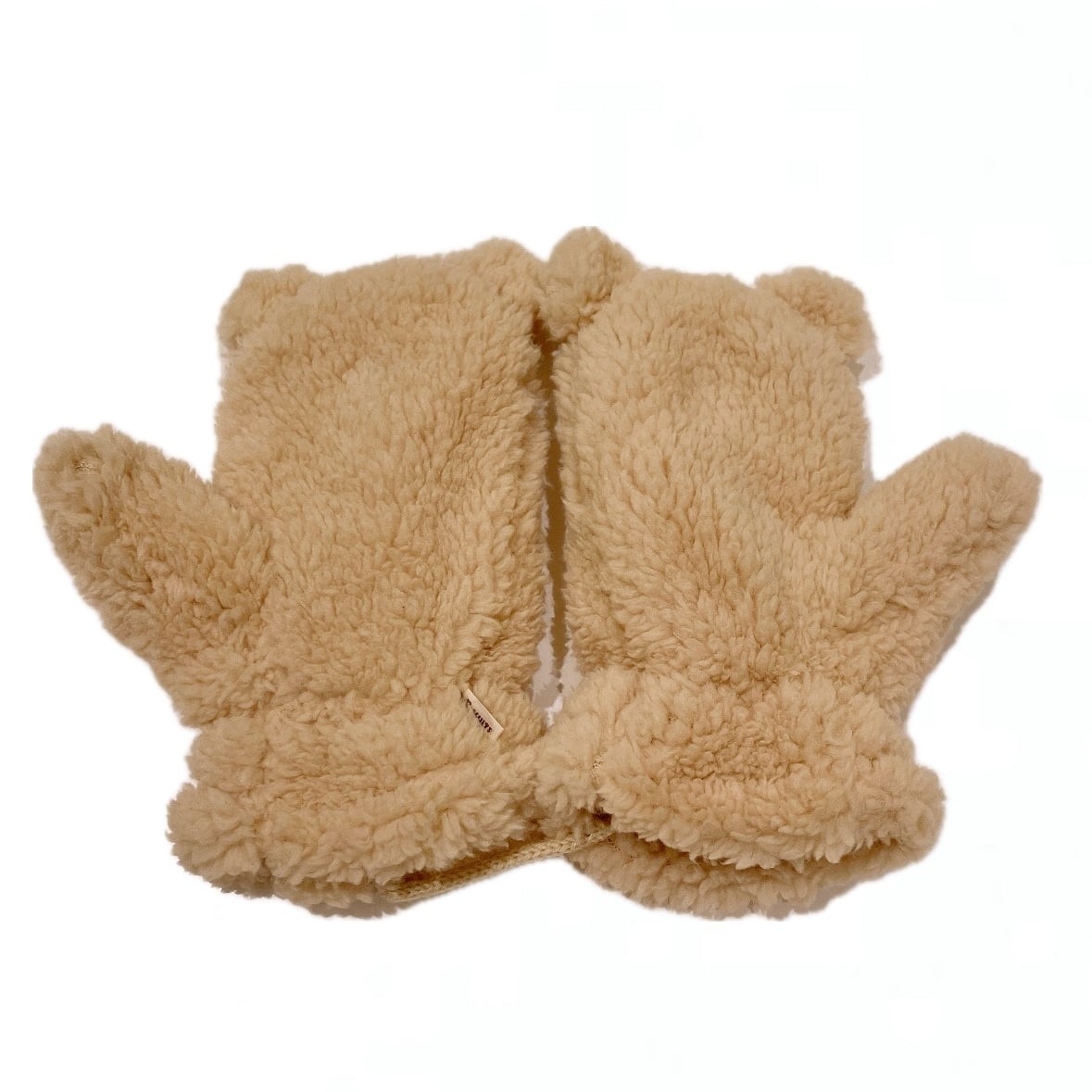 手の甲部分にはかわいいくまのお顔と、立体的なお耳がちょこんと愛らしいデザインです。