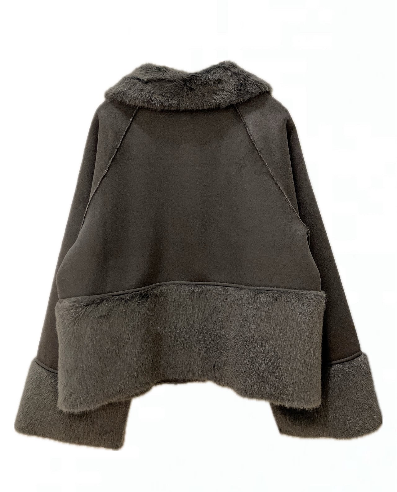 触り心地抜群のフェイクムートン素材、一枚でコーデの主役になるアイテムです。