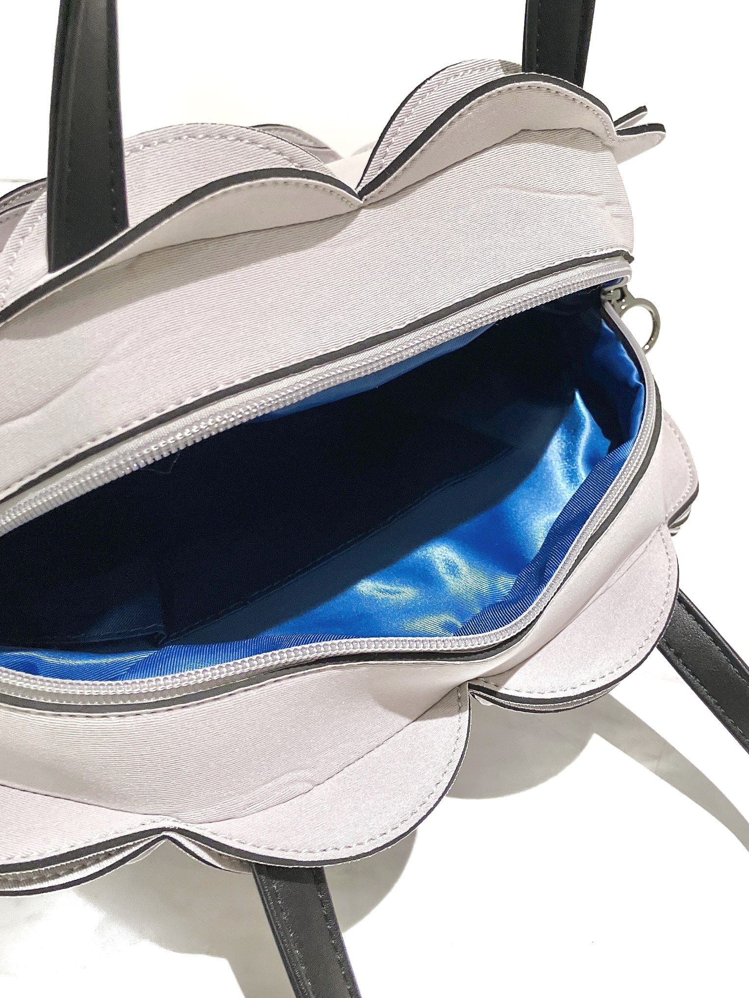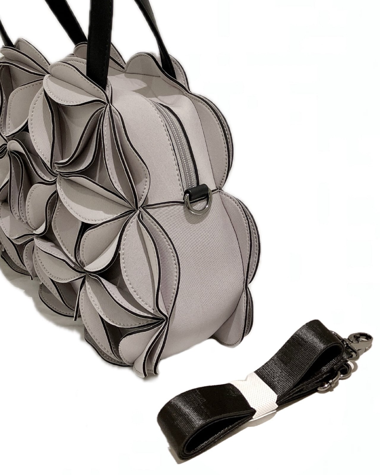 デザインは立体的なフラワーモチーフ、配色カラーがステキなミニボストンバック。