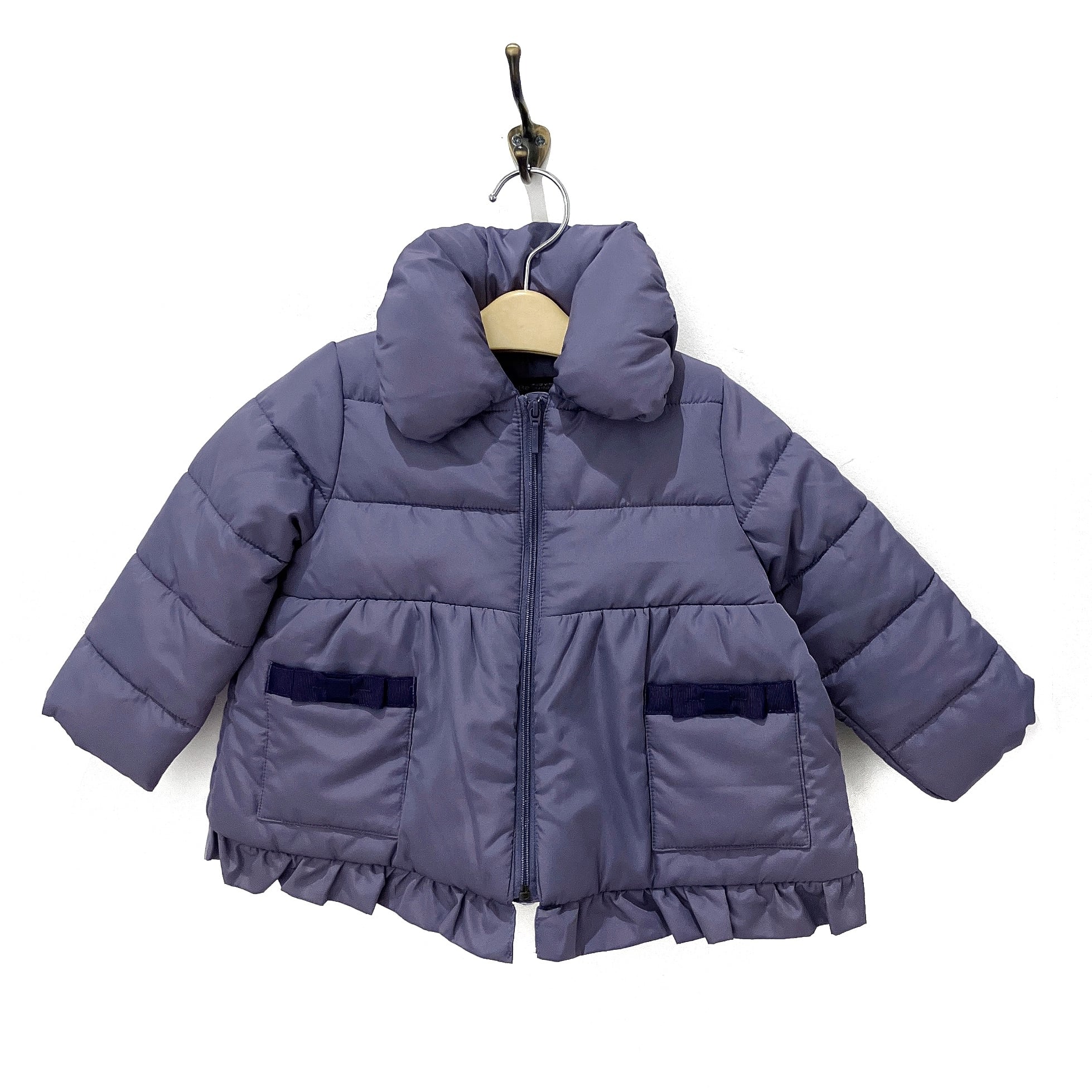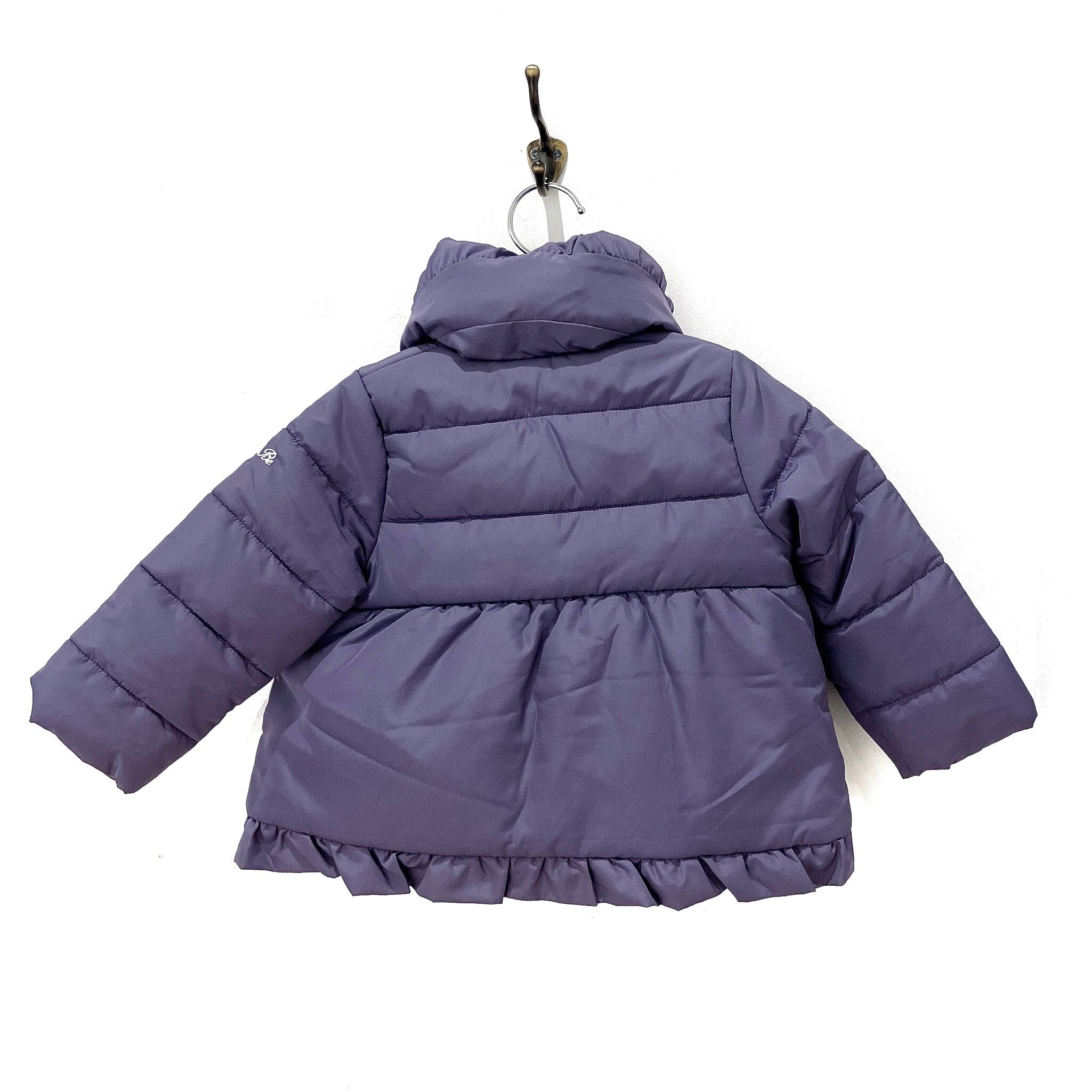 マットタフタを使用した襟付きの女の子用中綿コート。