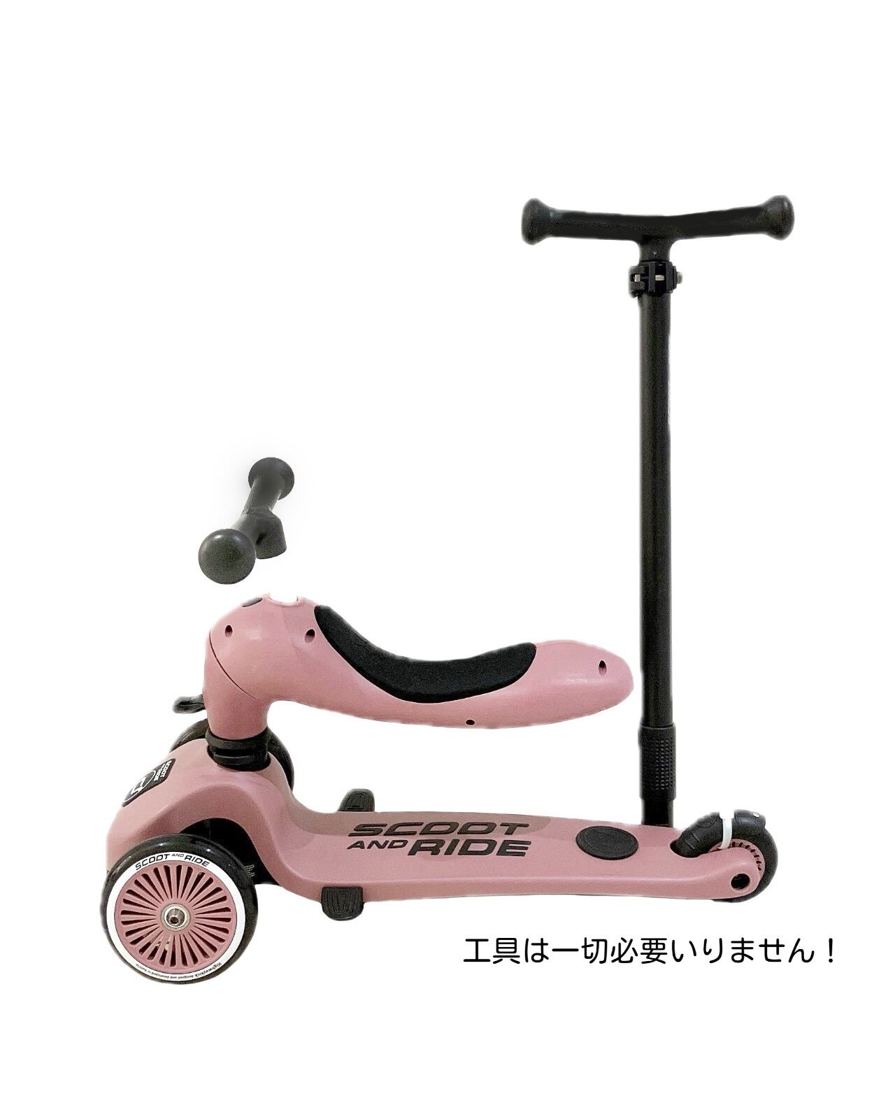 ハイウェイキック1は1歳~5歳頃まで長く使えるキッズスクーターで、シートに座って乗る【サドルモード】と立って乗る【スタンドモード】の2wayで楽しめます。