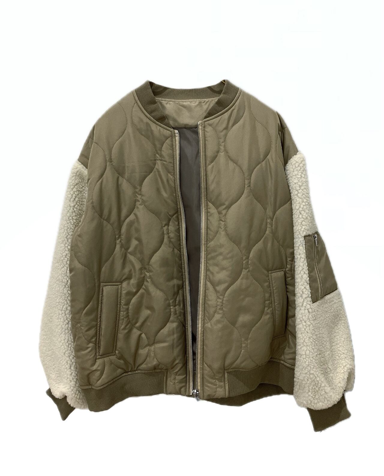 ピーチタフタ素材に中綿キルト、袖にはボアになっております。