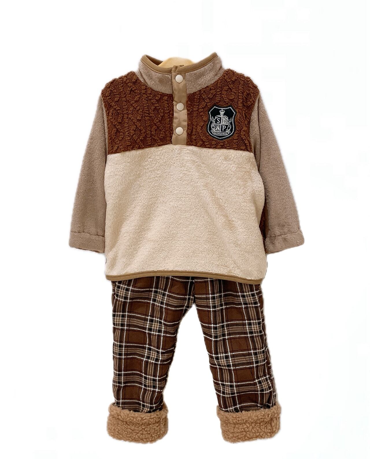 チェックのポケットにほどこしたクマさんのブランドネームタグがポイントです♪
