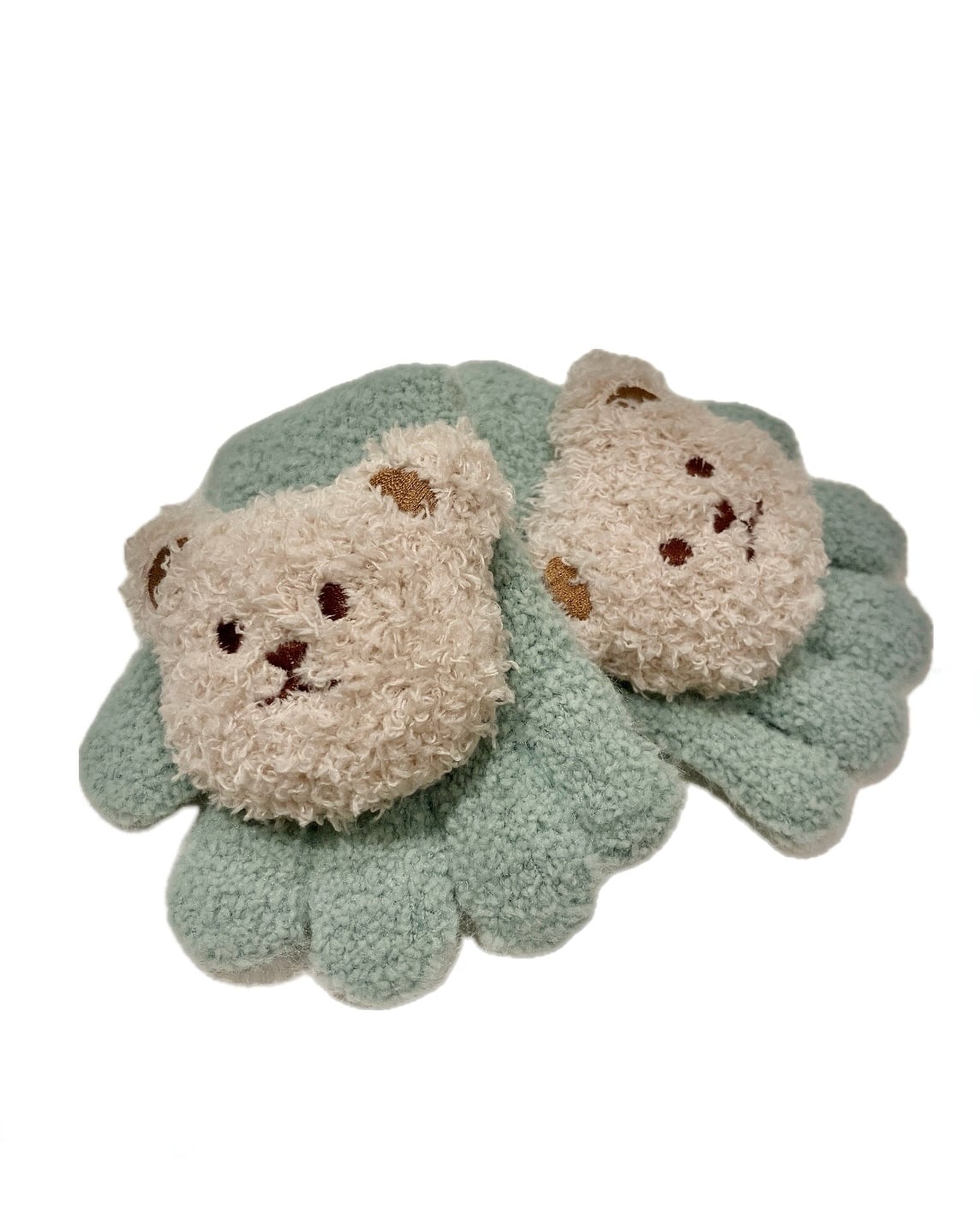 SLAP SLIP クマさんフェイス付きもこもこ手袋 ミントグリーン BeBe