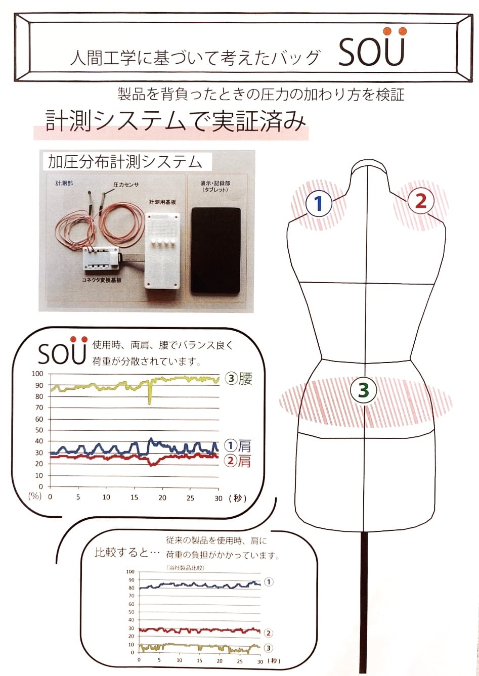 『肩や腰が痛い』『使っていて重く感じる』、そんな悩みに少しでも寄り添いたい!という思いから、人間工学に基づいてつくられたリュックです。