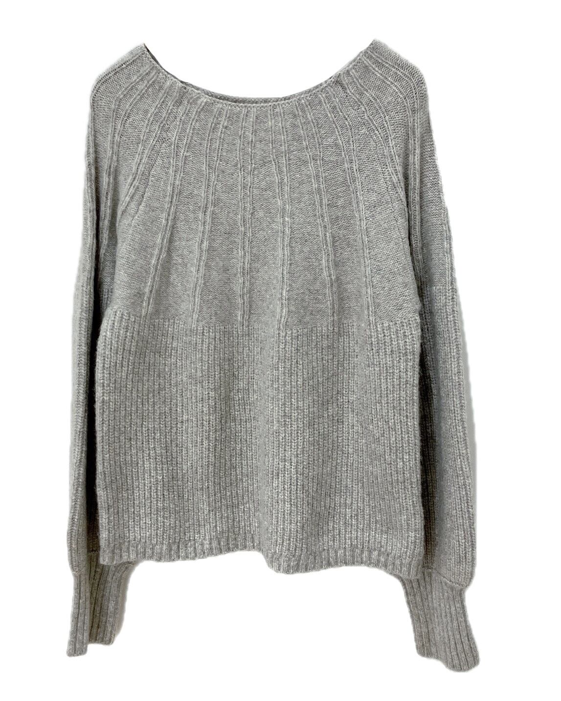 ウール混のフワッと弾力のあるメランジ糸を使用したニット。