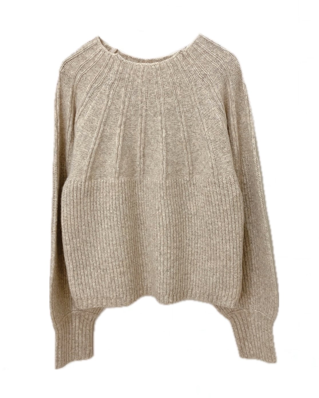 ウール混のフワッと弾力のあるメランジ糸を使用したニット。